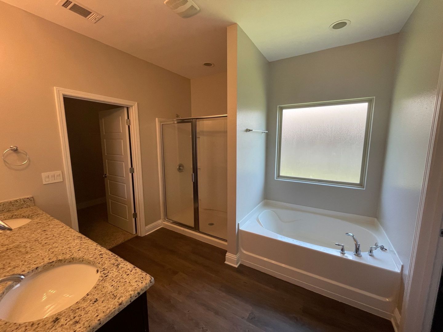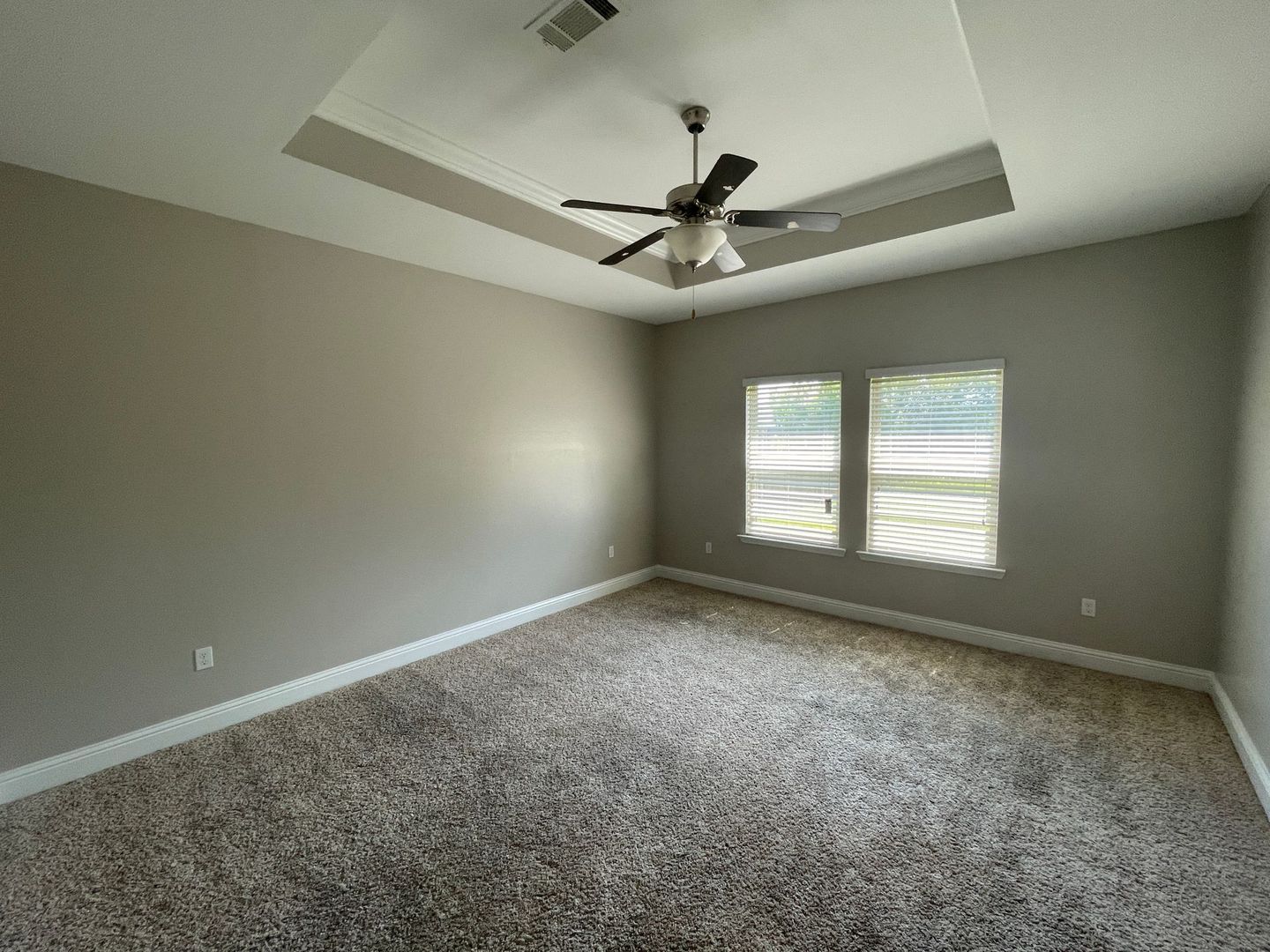 Spacious executive home great for entertaining family and friends. Split floor plan. 4 bedrooms, two and 1/2 bath, Tray ceiling living room and master bedroom with stand-up shower and soaking tub in master bath.Beautiful granite countertops, island kitchen and stainless steel appliances. Only a few years old. Double car garage and covered back patio. Available mid-January, no pets or smoking allowed..